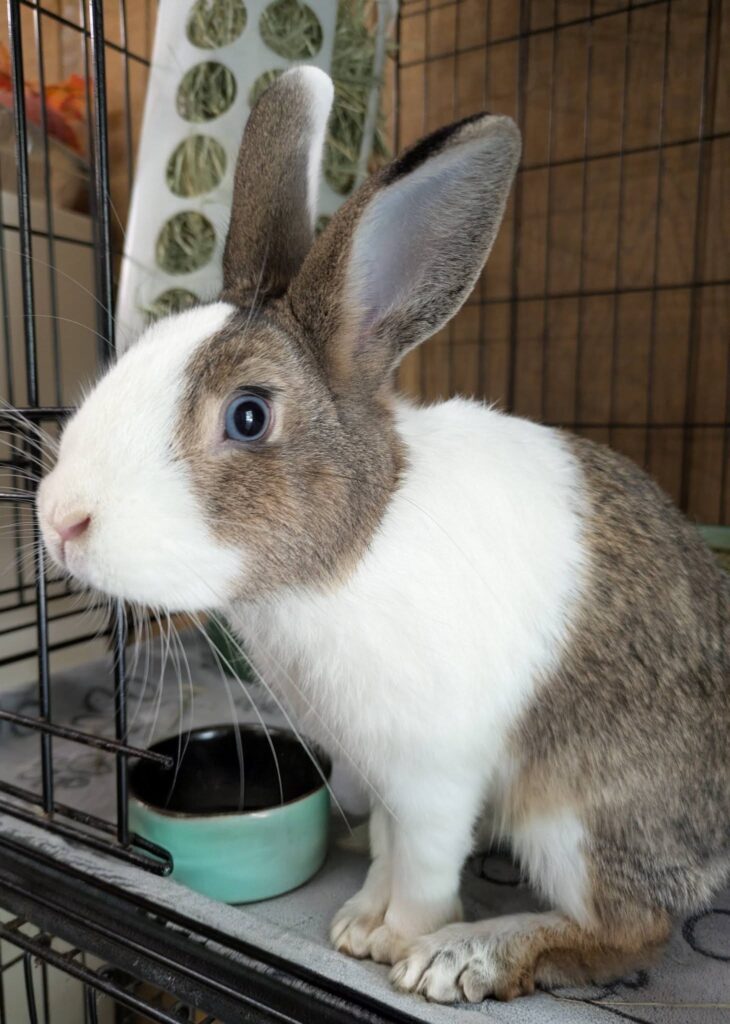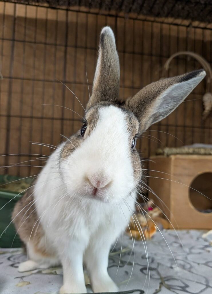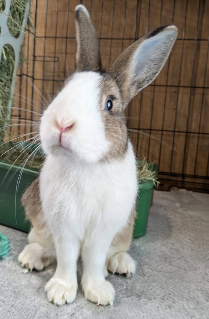 Bunny of the Month is Rowan. He is a Dutch Mix born around July of 2025. This little guy was born at a kind samaritans home after they rescued his mom from being loose. He is very sweet, a bit hand shy, but doing well in learning we are not a threat and we are kind humans. He would do great in almost any homearound July of 2025. This little guy was born at a