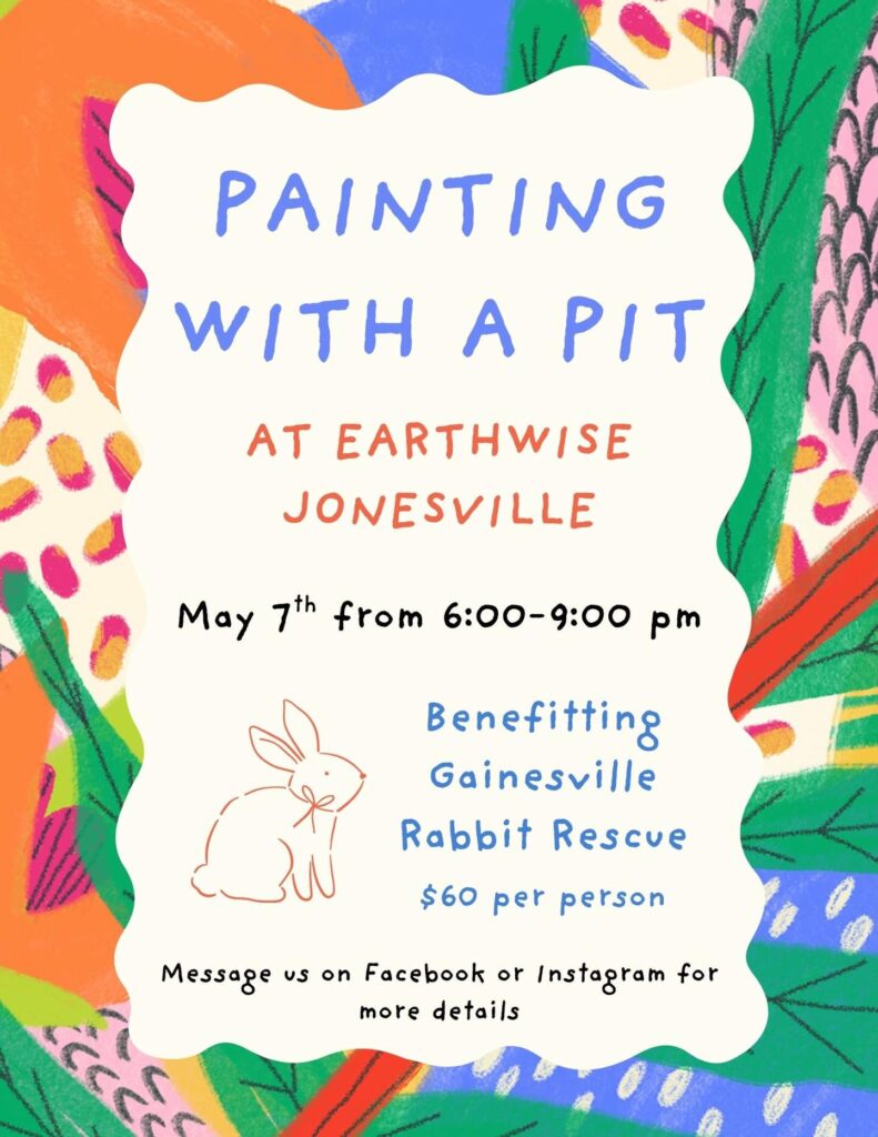 Join us for a fun, creative night at Earthwise in Jonesville! For $60 per person, you’ll send in a photo of one animal (dogs, cats, rabbits, horses — any animal!) and artist Sam Weyman Epstein will sketch it ahead of time. Then on May 7, you’ll paint your personalized masterpiece with all supplies + light refreshments provided.